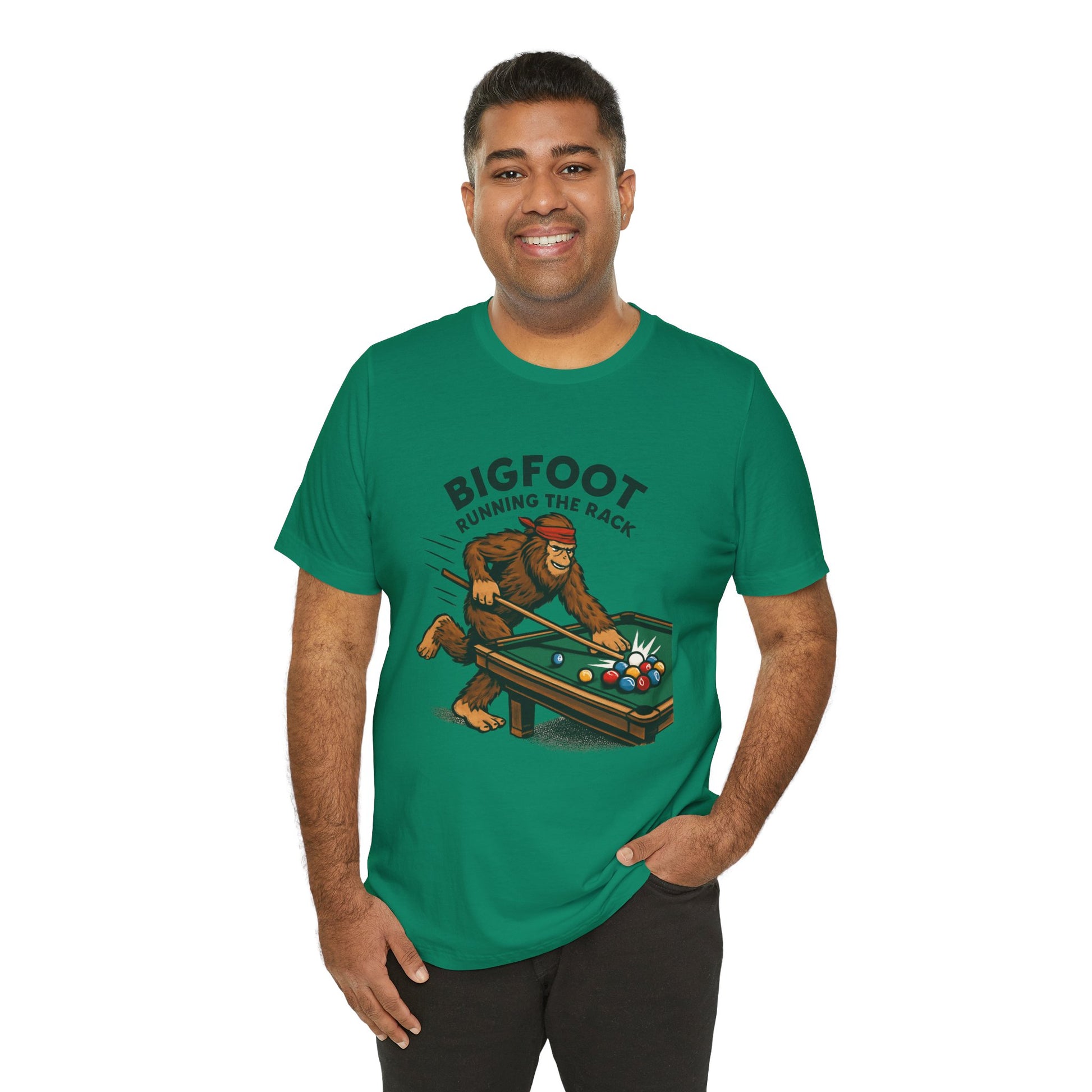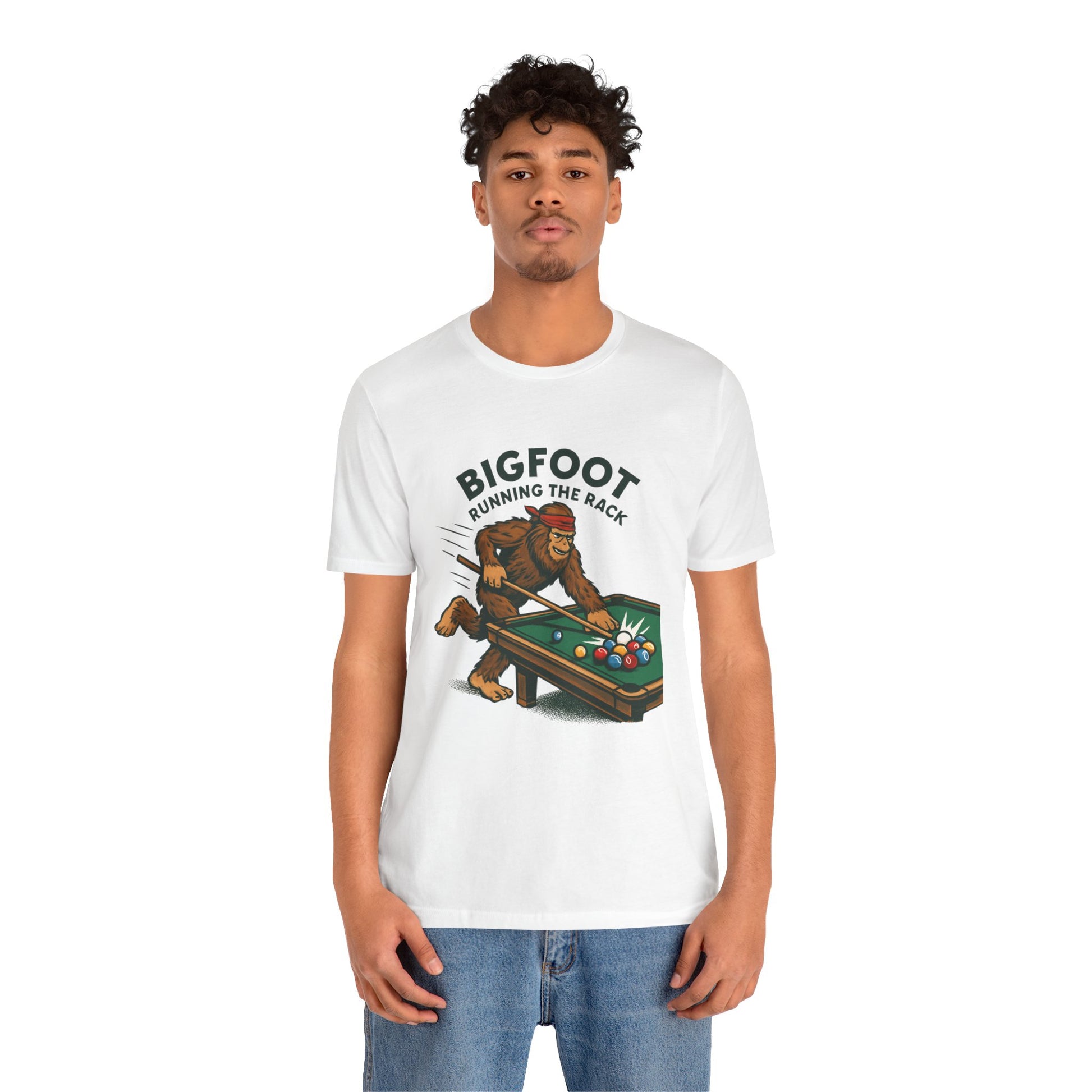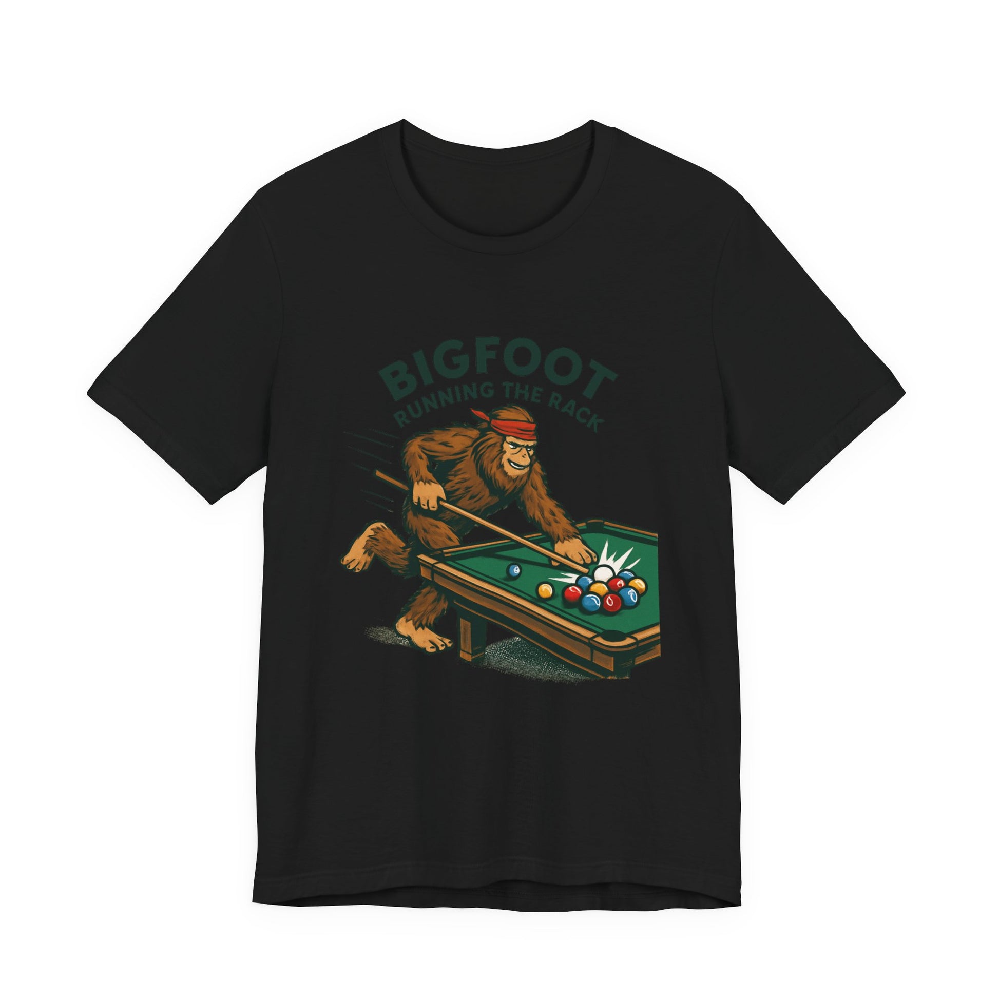 Bigfoot Pool Shark T‑Shirt — "Bigfoot Running the Rack" Billiards Tee