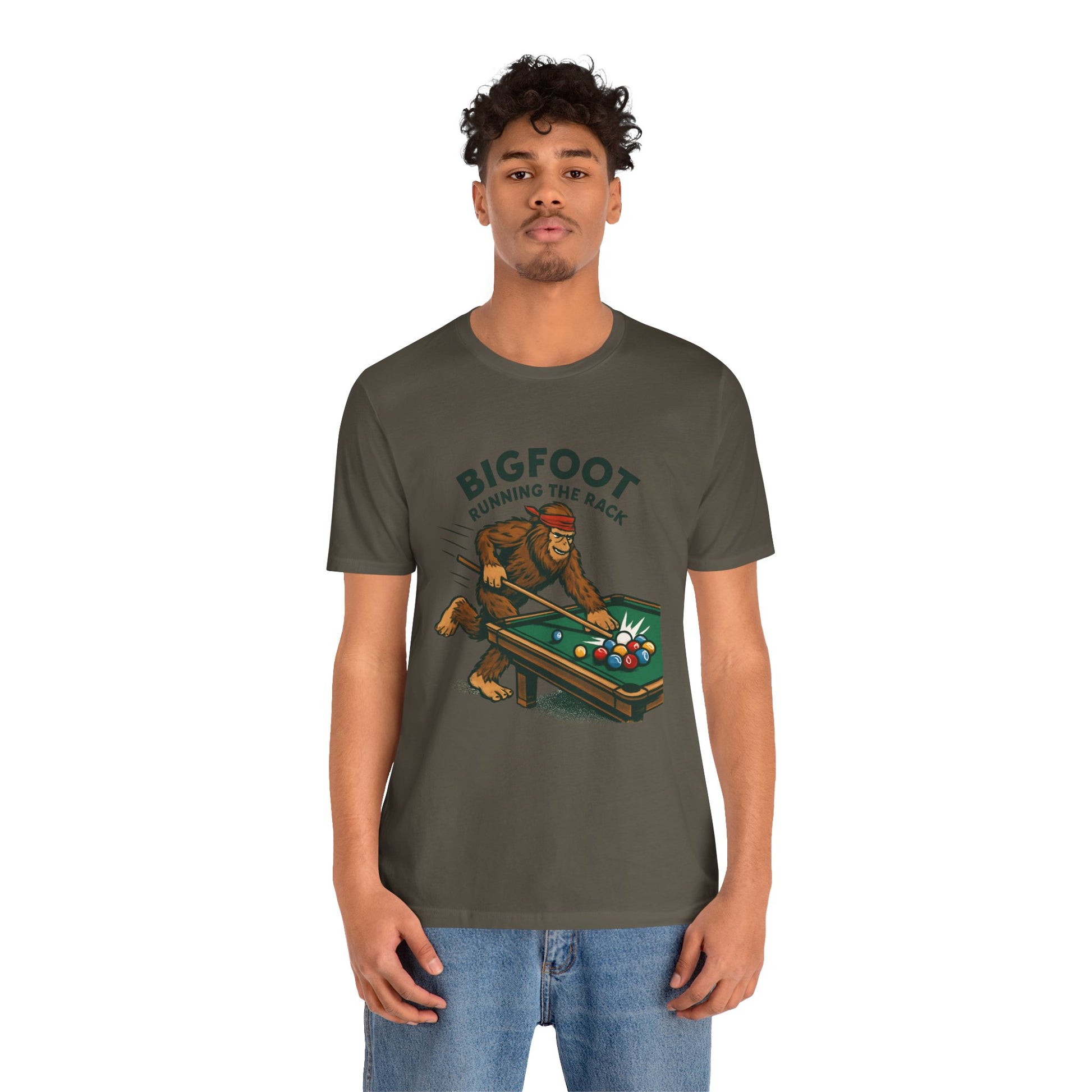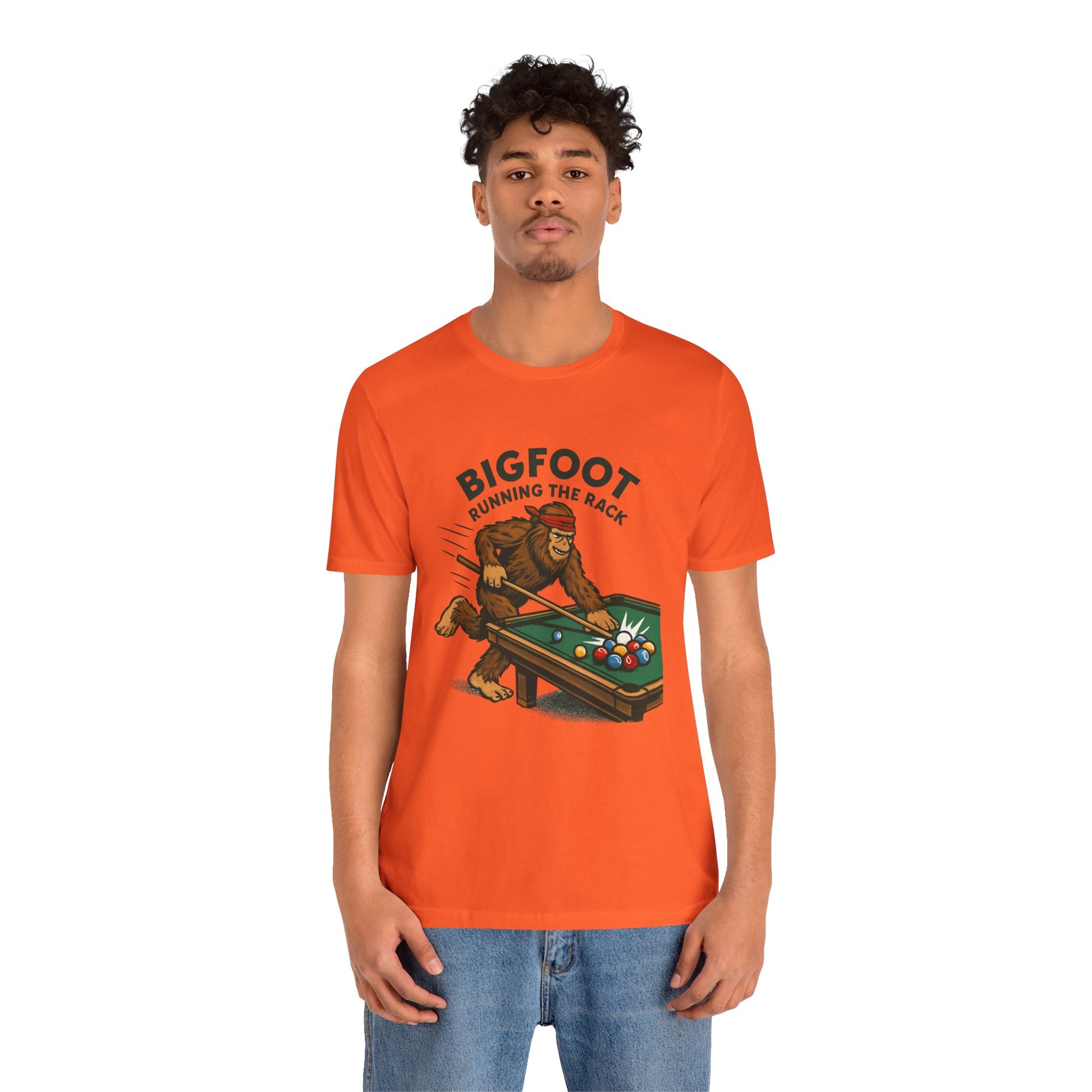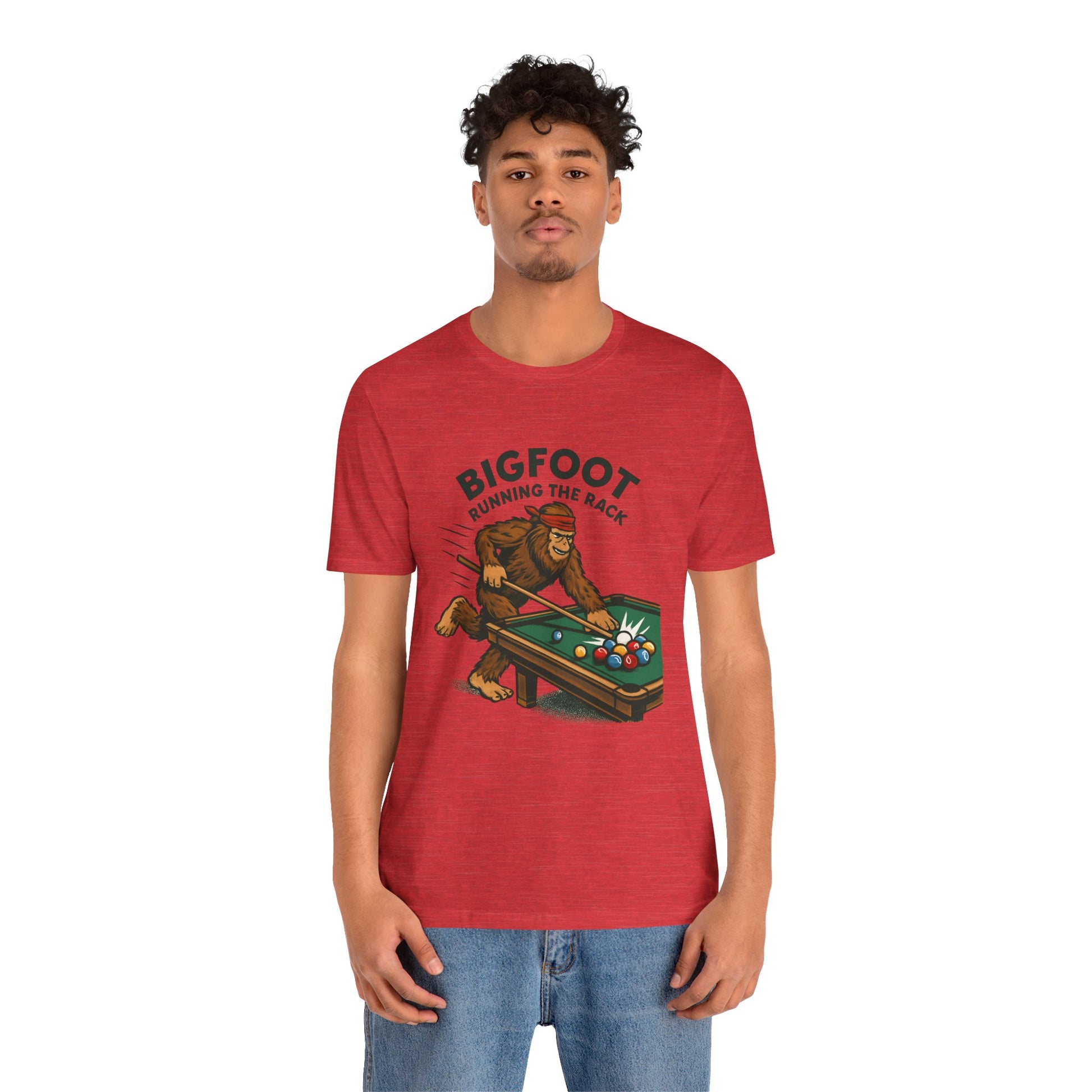 Bigfoot Pool Shark T‑Shirt — "Bigfoot Running the Rack" Billiards Tee